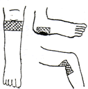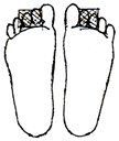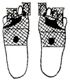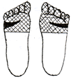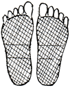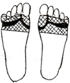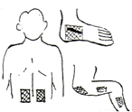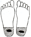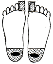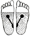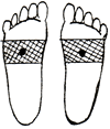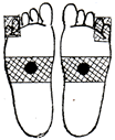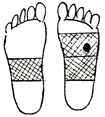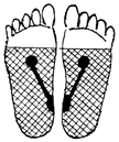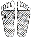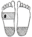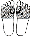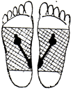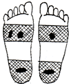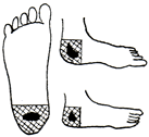 足裏の腎臓の反射区を中心に数枚貼り、さらに痛み、変形部にも貼るとよいでしょう。 |