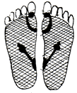 足裏の土踏まずを中心に貼り、さらに患部にも貼ると効果的です。 |
