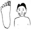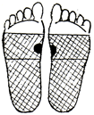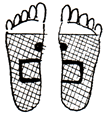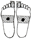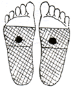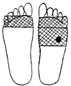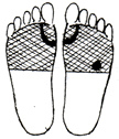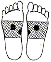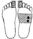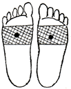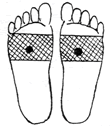 足裏の肝臓、腎臓、生殖器の反射区に貼ります。足の甲と足の親指にも貼ると効果的です。 |