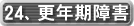更年期のホルモンの変化、日常生活の欲求不満や不安などから起こる肉体的、精神的な諸症状で、頭痛、吐き気、肩凝り、目まい、などさまざまです。